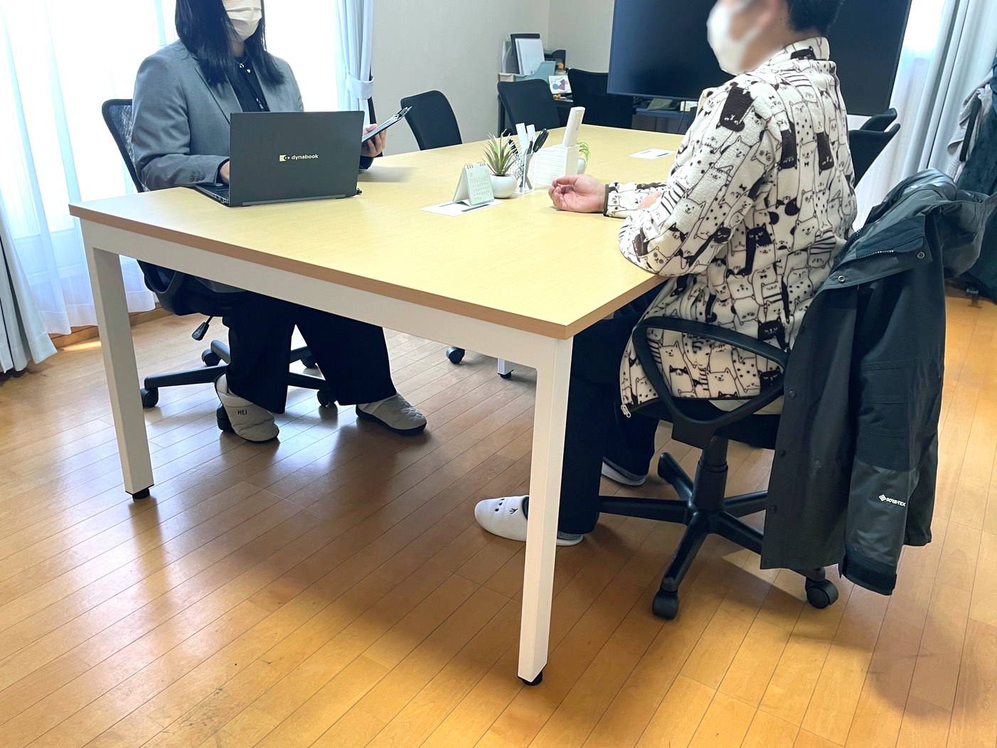執務室には福祉専門職員が常駐し、就労者をサポート。また、就労者、ご利用企業様、双方とコミュニケーションを図るため、定期的にミーティングルームで面談を行います。